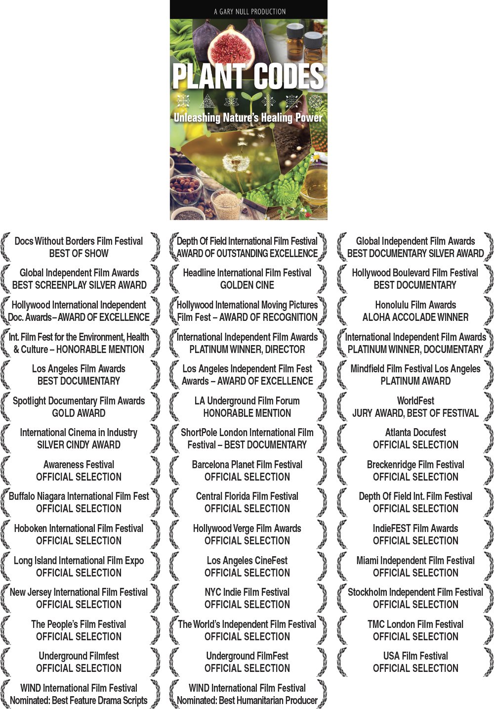 Gary Null Productions has produced over 100 independent documentary films and videos, presenting in-depth studies and unique understanding on social, economic, health, medical, humanitarian, and cultural topics. These documentaries have been selected and won over 1,000 awards in some of the world's most prestigious film festivals.